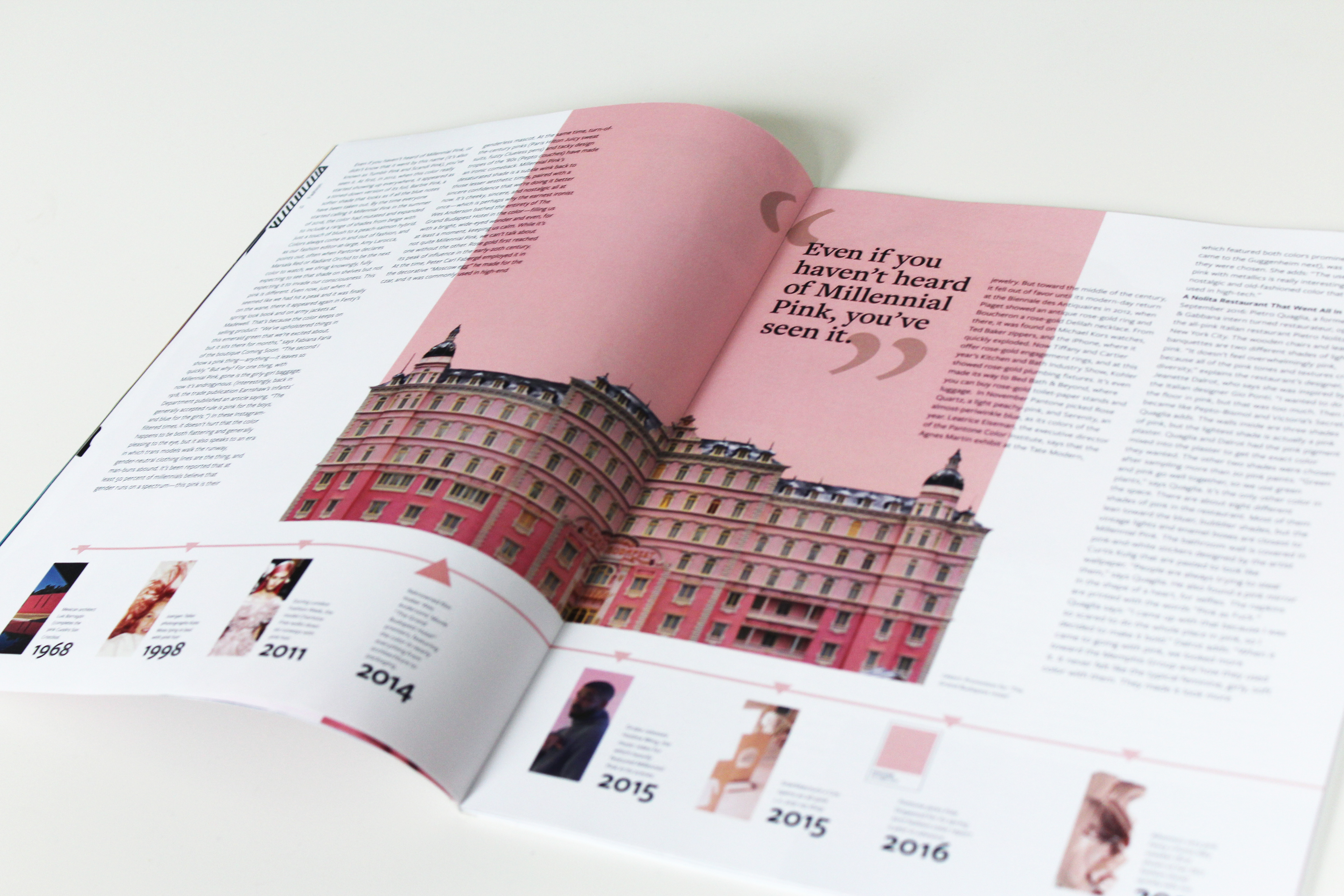 Noting the lack of successful print media aimed at emerging adults I set out to create a magazine for the up-and-coming. In this case 18 - 25-year-olds with some college education but relatively limited budget. Therefore the magazine would only be quarterly instead of monthly to reduce costs and act not just as an informational publication but as a work to be displayed on a bookshelf, desk, Instagram account, or coffee table until the next issue was published. These features of the magazine as its own work of design to be displayed, its voice, and its quarterly publication would be what convinced the demographic to purchase and remain subscribed to the magazine.